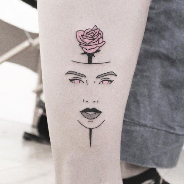 大腿纹身--一组大腿上的彩色小创意纹身图案