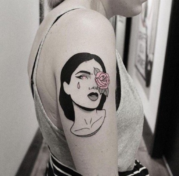 大腿纹身--一组大腿上的彩色小创意纹身图案