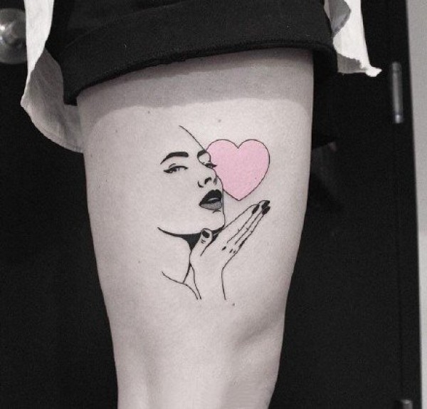 大腿纹身--一组大腿上的彩色小创意纹身图案