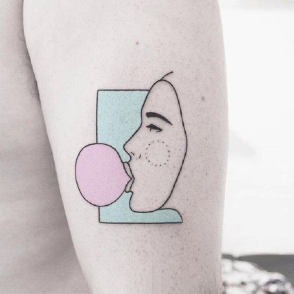 大腿纹身--一组大腿上的彩色小创意纹身图案