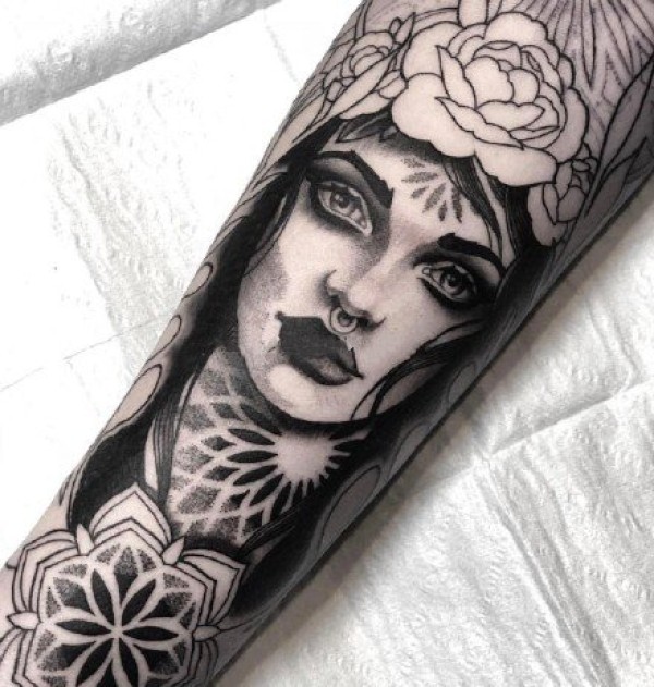 女性人物纹身图案 男生大臂纹身女性人物纹身图案