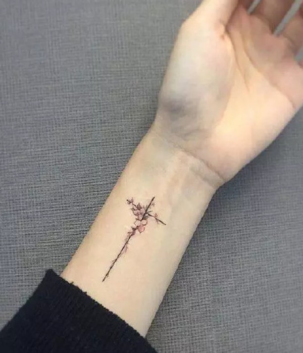 手腕上的简单风格十字架纹身图案