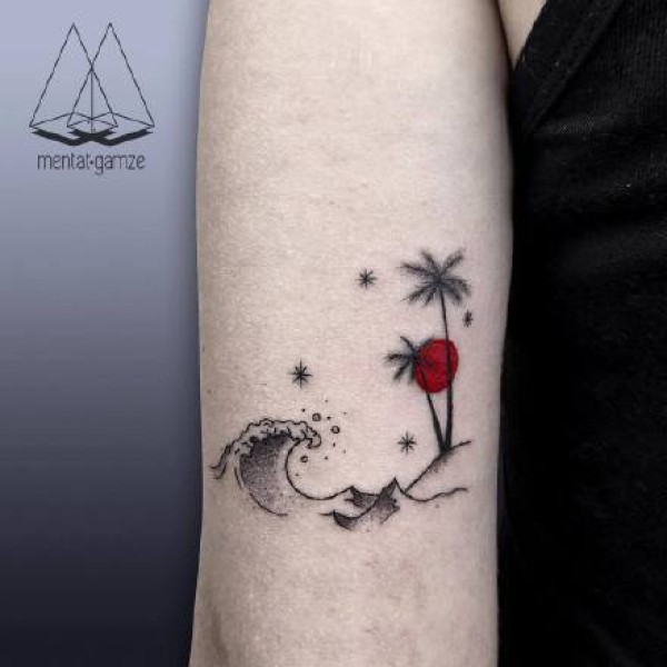 一组来自国外纹身师的小红点红黑元素纹身图案
