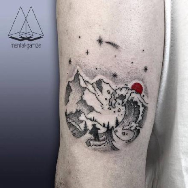 一组来自国外纹身师的小红点红黑元素纹身图案