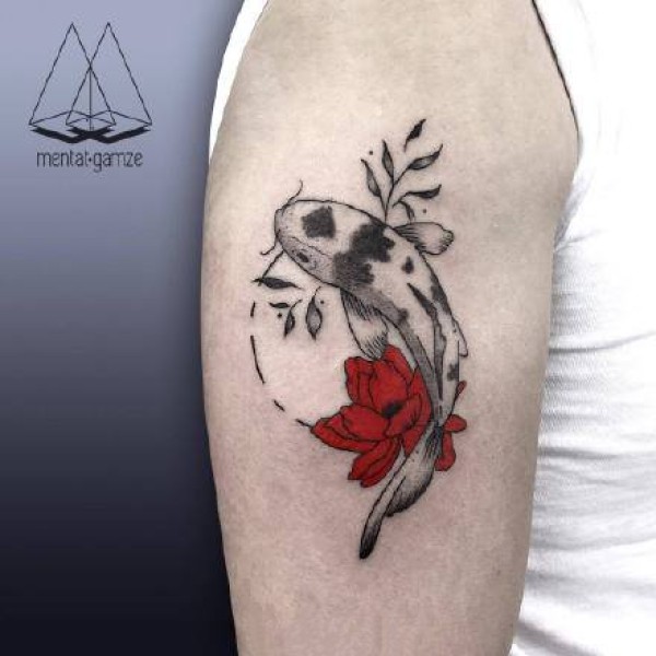 一组来自国外纹身师的小红点红黑元素纹身图案