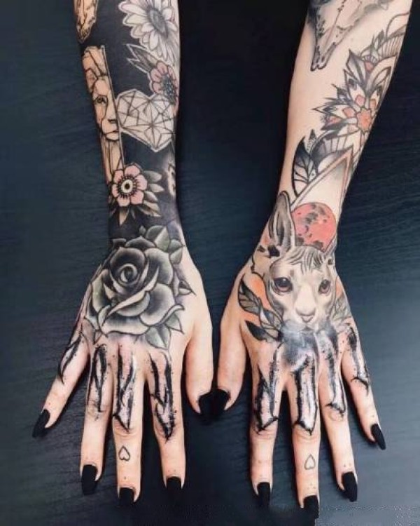 手背oldschool图案_15张手背上的oldschool纹身图案作品
