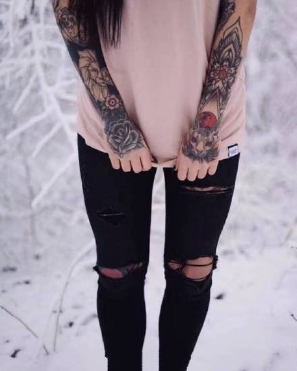 女性oldschool黑灰纹身--女生纹黑灰oldschool也可以很性感