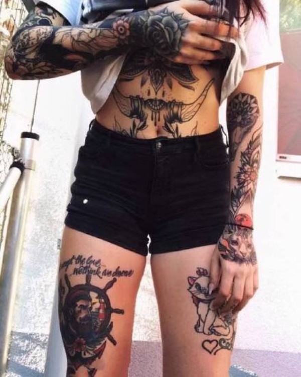 女性oldschool黑灰纹身--女生纹黑灰oldschool也可以很性感