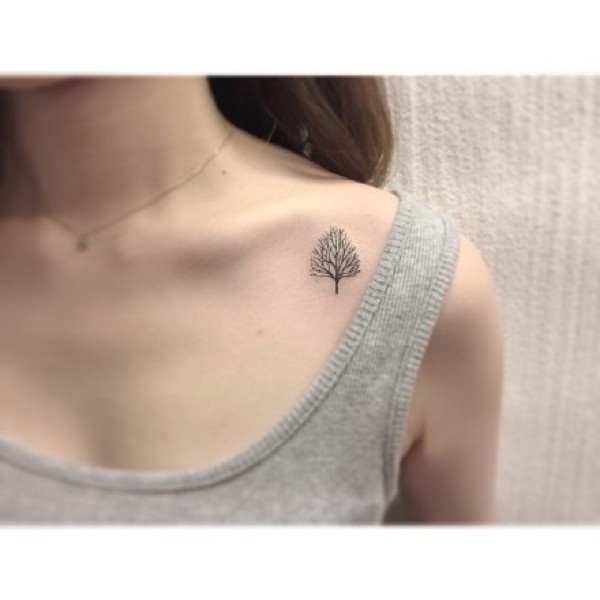 锁骨刺青:纹在女生锁骨处的小清新纹身图案9张