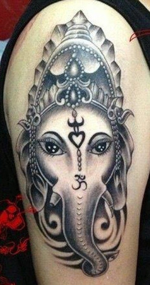 手臂黑灰象神_一组12张手臂上的黑灰象神纹身图案作品欣赏