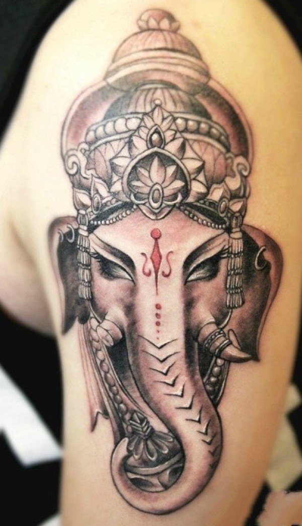 手臂黑灰象神_一组12张手臂上的黑灰象神纹身图案作品欣赏