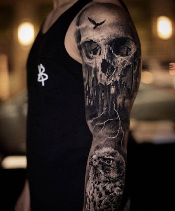 欧美写实纹身 包大臂的9张手臂写实纹身图案