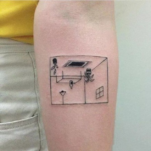 方框小黑纹身图--几何图形方框里的小黑色纹身图案