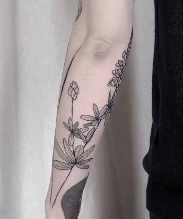 一组手臂上线条感极强的水墨植物花朵纹身图案