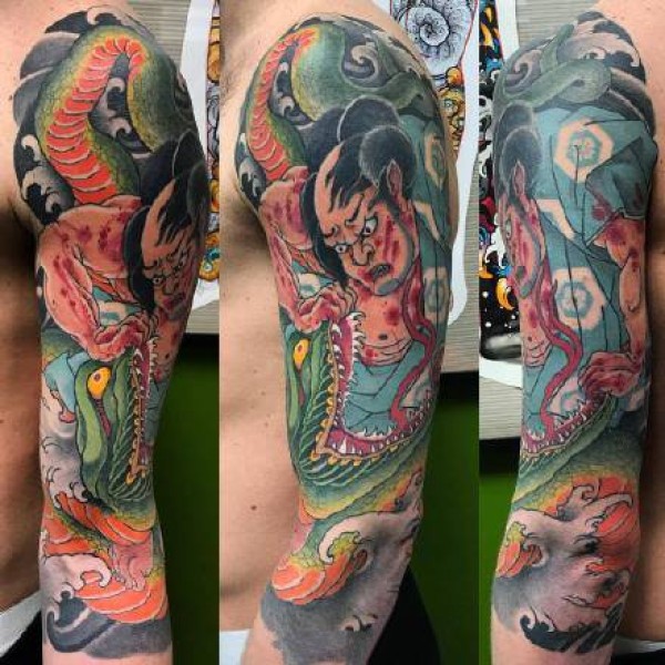 日式手彫刺青作品—半甲龙很感谢客户认可手彫刺青,手彫是日本纹身的手工雕刻技术,时间可以追溯到日本17世纪的江户时代。19世纪,手彫技术被日本黑帮挪用,被用作入会仪式,象征着从此就是江湖中人。在日式传统