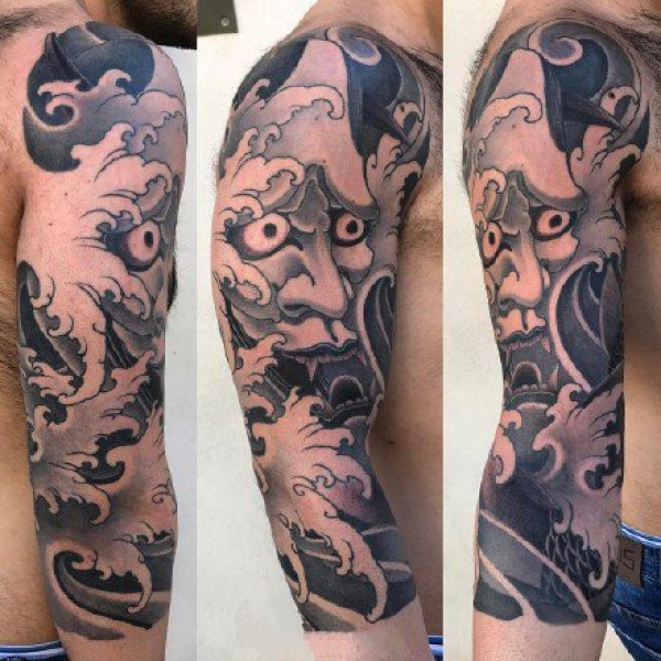 欧美花臂纹身_22张霸气黑灰欧美大黑花臂纹身图案作品图片