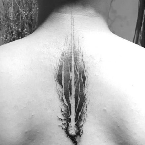 女生后腰纹身黑白灰风格抽象线条纹身图案