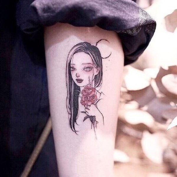 27张可爱美丽的卡通小女孩--纹身师rikkiiies的纹身图案作品