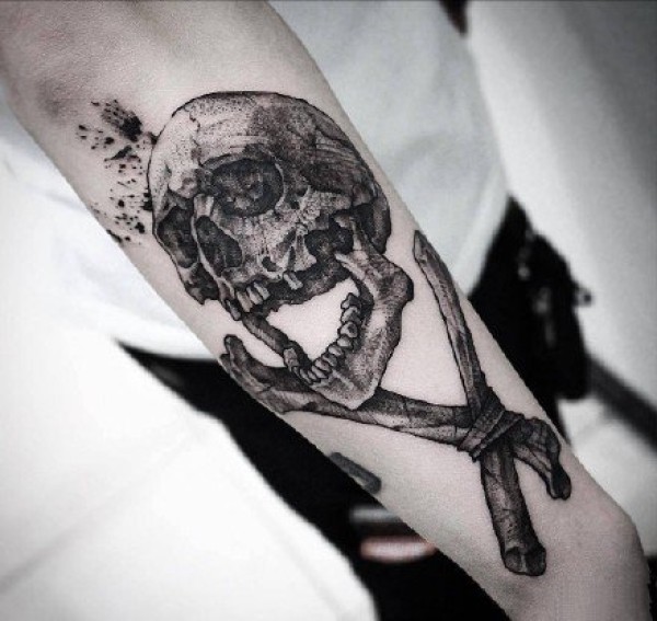 个性手臂悲伤的骷髅纹身图案图案图片_骷髅纹身图案大全_纹身图吧