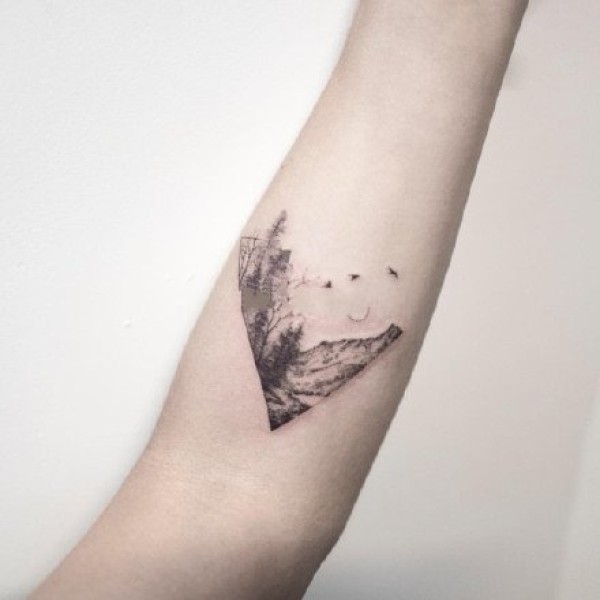 森林树木纹身图案_一组手臂上黑灰树木森林纹身图案作品