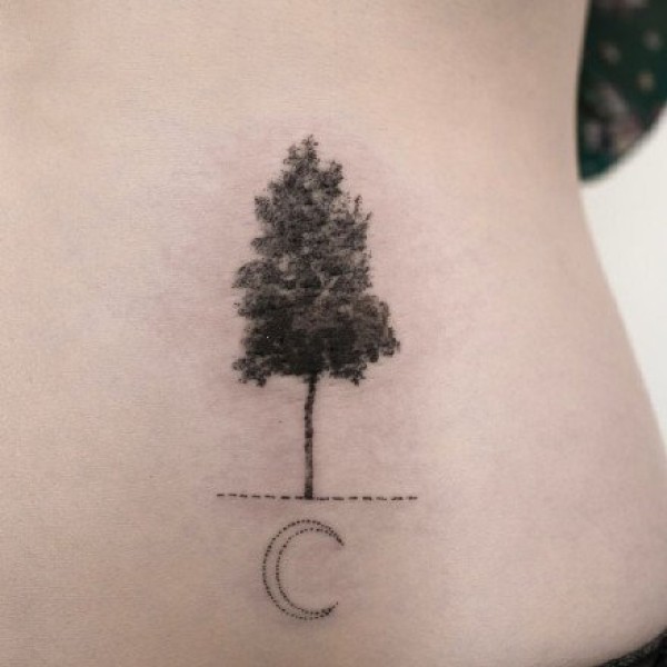 森林树木纹身图案_一组手臂上黑灰树木森林纹身图案作品