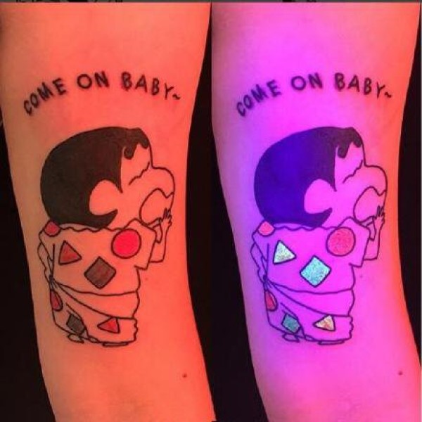 夜晚很漂亮的纹身图案搭配荧光纹身效果图欣赏