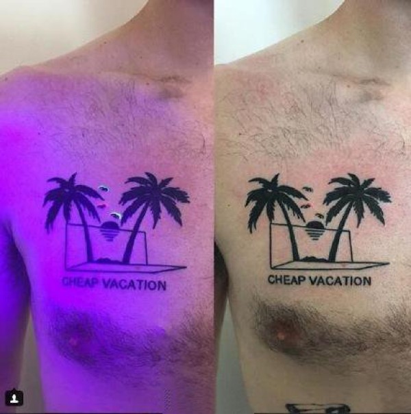夜晚很漂亮的纹身图案搭配荧光纹身效果图欣赏