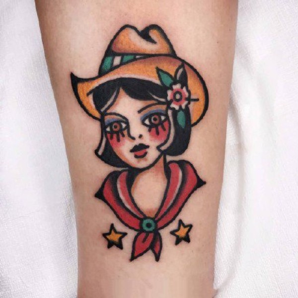 卡通少女纹身图-一组oldschool风格的美少女纹身图案