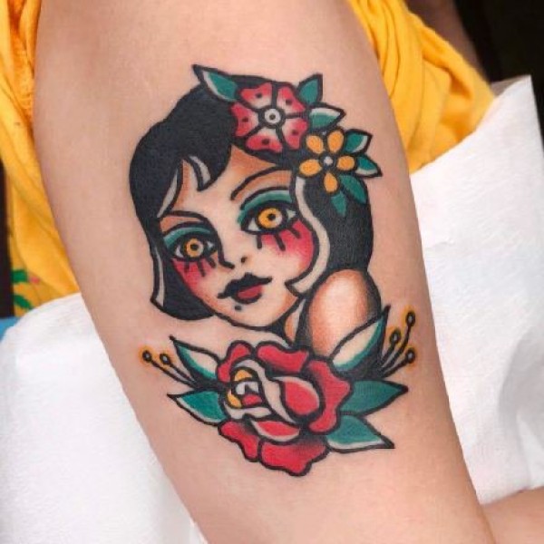 卡通少女纹身图-一组oldschool风格的美少女纹身图案