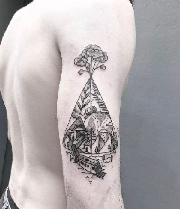 适合情侣的手腕点刺山脉海浪纹身图案