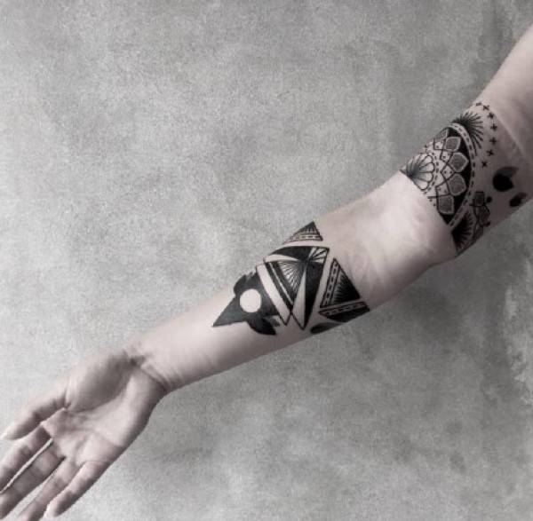 25款男性黑色手臂线条纹身点刺技巧半甲纹身图案