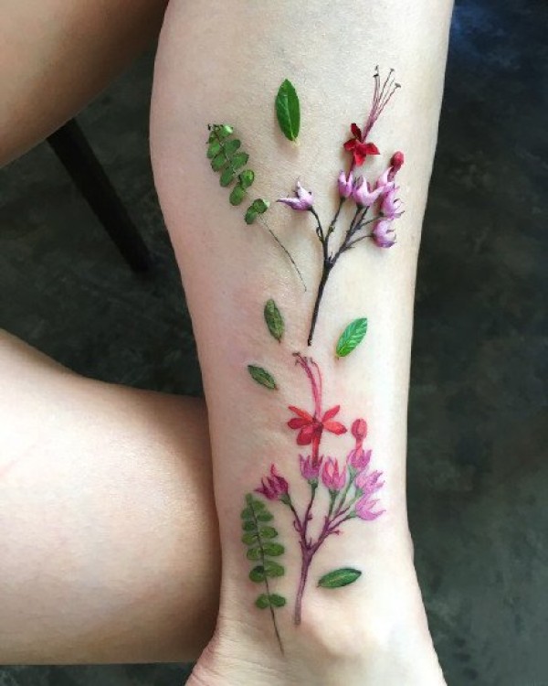 清新花朵腿部纹身图案图片_植物纹身图案大全_纹身图吧