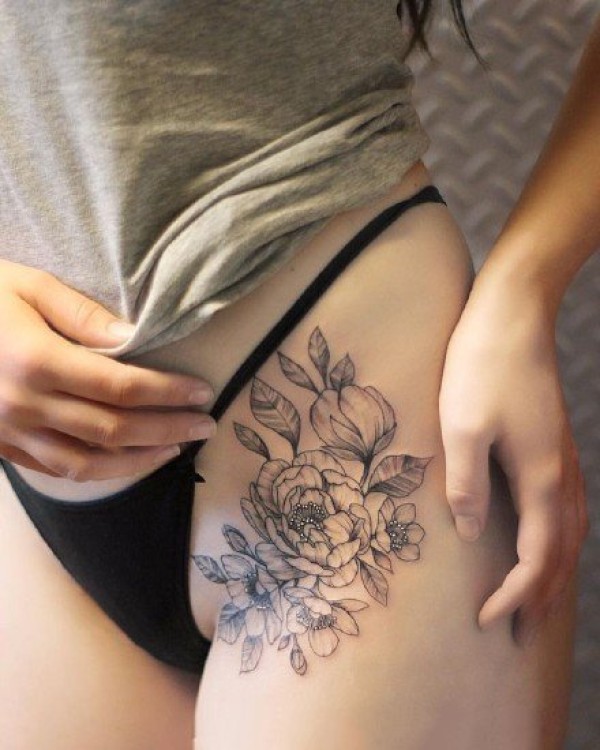 性感花朵纹身--女性大腿侧部性感的花朵纹身