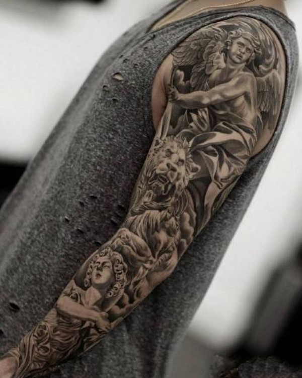 写实大黑臂纹身--6张欧美写实黑色大花臂纹身图案