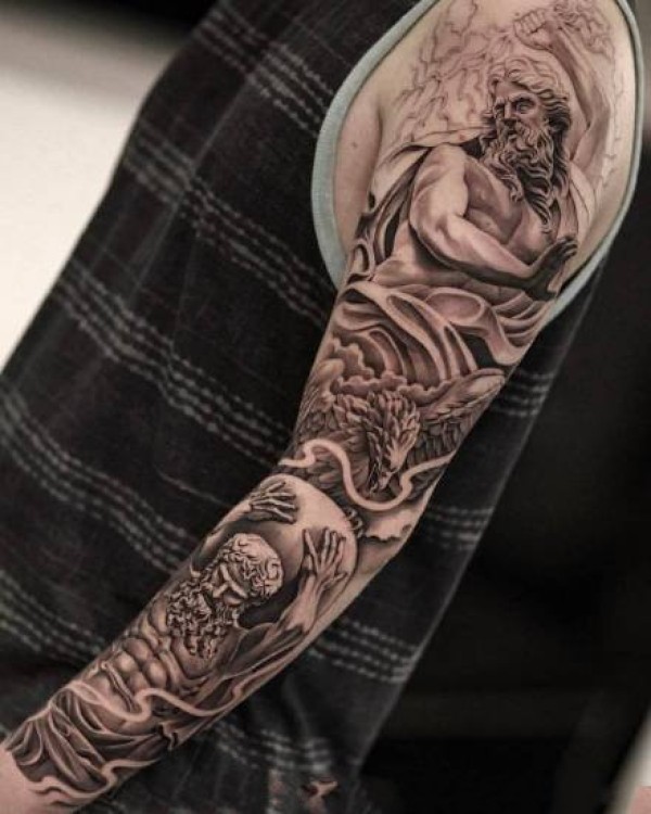 写实大黑臂纹身--6张欧美写实黑色大花臂纹身图案