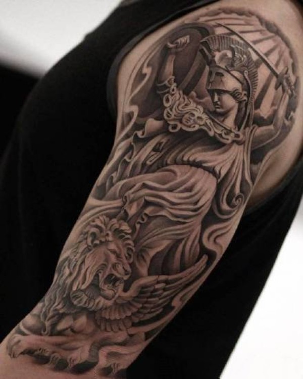 写实大黑臂纹身--6张欧美写实黑色大花臂纹身图案