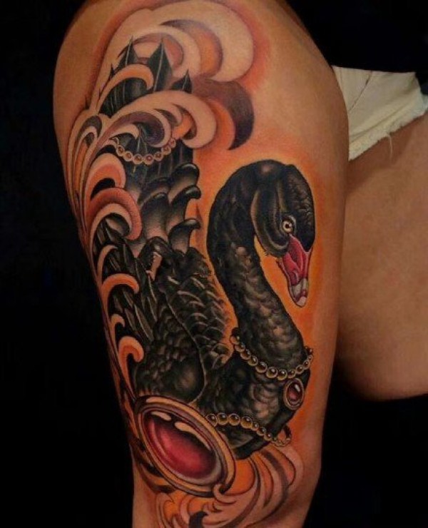 天鹅纹身图--一组关于天鹅的漂亮纹身图案欣赏