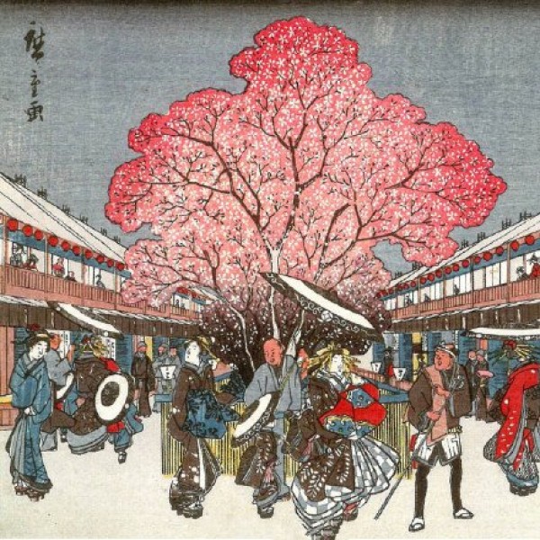 浮世绘樱花建筑纹身素材-可以拿来纹身