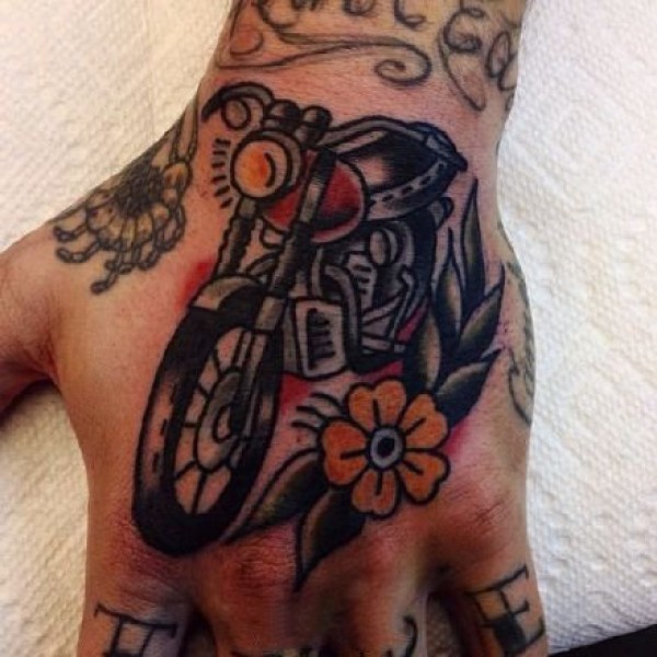 摩托车爱好者们身上帅气的摩托车纹身图案