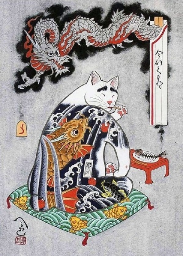 日本插画家田中秀治以猫为主题的浮世绘作品