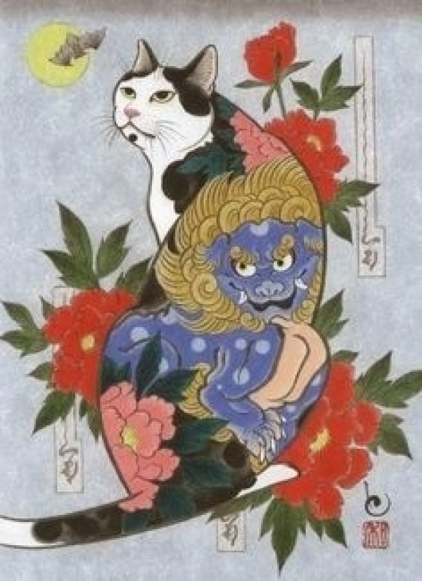 手背猫纹身:9张大花手背的猫纹身图案赏析