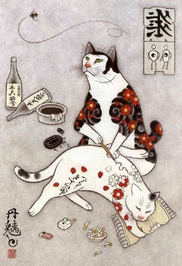 日本插画家田中秀治以猫为主题的浮世绘作品