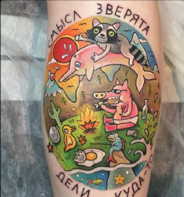 彩色school风格适合大臂和大腿的纹身图案欣赏