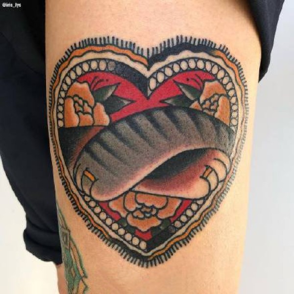 心形猫咪纹身--一组oldschool风格的猫咪主题心形纹身图案
