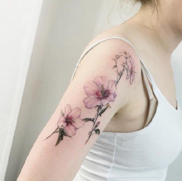 一组女生唯美小清新彩色花朵纹身图案作品