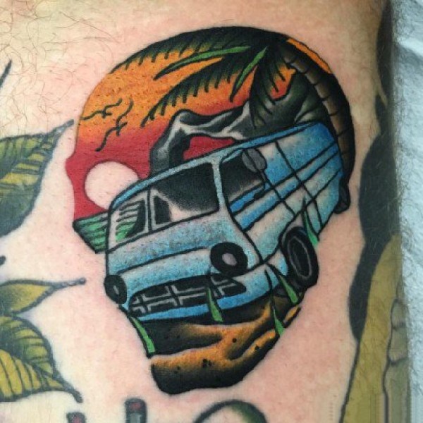 创意骷髅纹身--国外纹身艺术家Sam Kane的彩色骷髅创意纹身图案