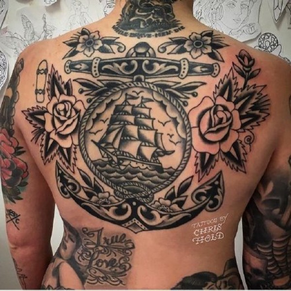 oldschool黑灰风格的9张男士大满背纹身图案作品