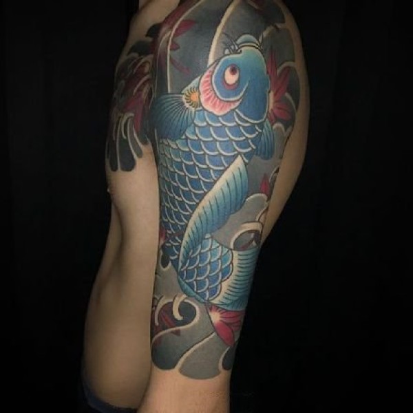 传统风格的几张鲤鱼大臂纹身图案作品