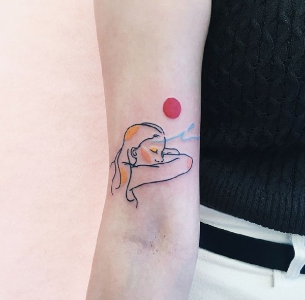 小清新风格的线条和奇妙配色纹身图案作品18张