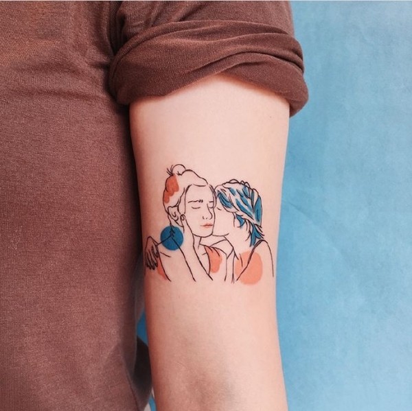 小清新风格的线条和奇妙配色纹身图案作品18张